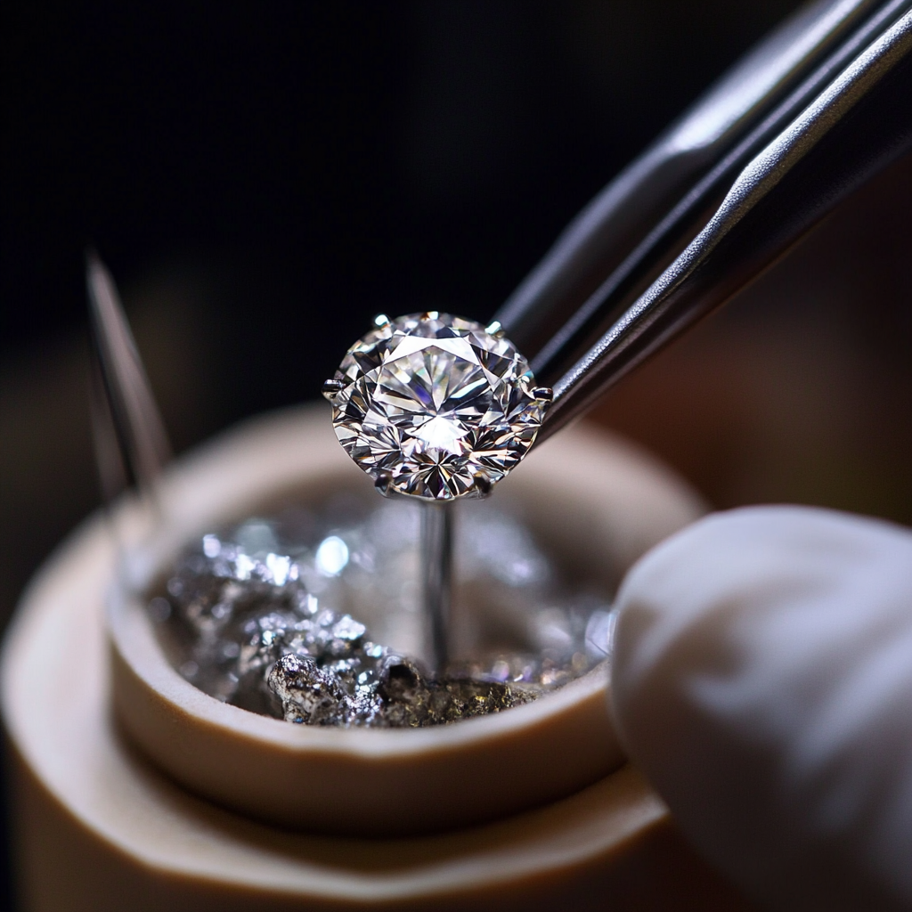 ダイヤモンドの輝きを最大限に引き出すため、繊細な爪留めの工程もすべて手作業で行い、細部にまでこだわり抜いた美しさを追求。